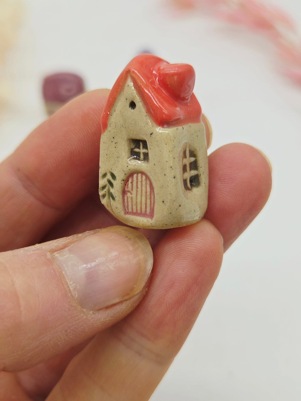 This set comprises 3 tiny ceramic houses as pictured and comes packaged in a tiny house matchbox. Houses are truly tiny and range in size from 1-3cm wide and tall.