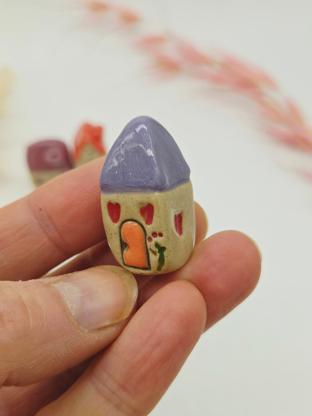 Houses look great on a shelf, in a printer's tray display, in a plant pot, as part of a fairy garden (they are high fire ceramics so are fine out in the weather), in a bonsai pot, as part of a tiny house display - the possibilities are endless.