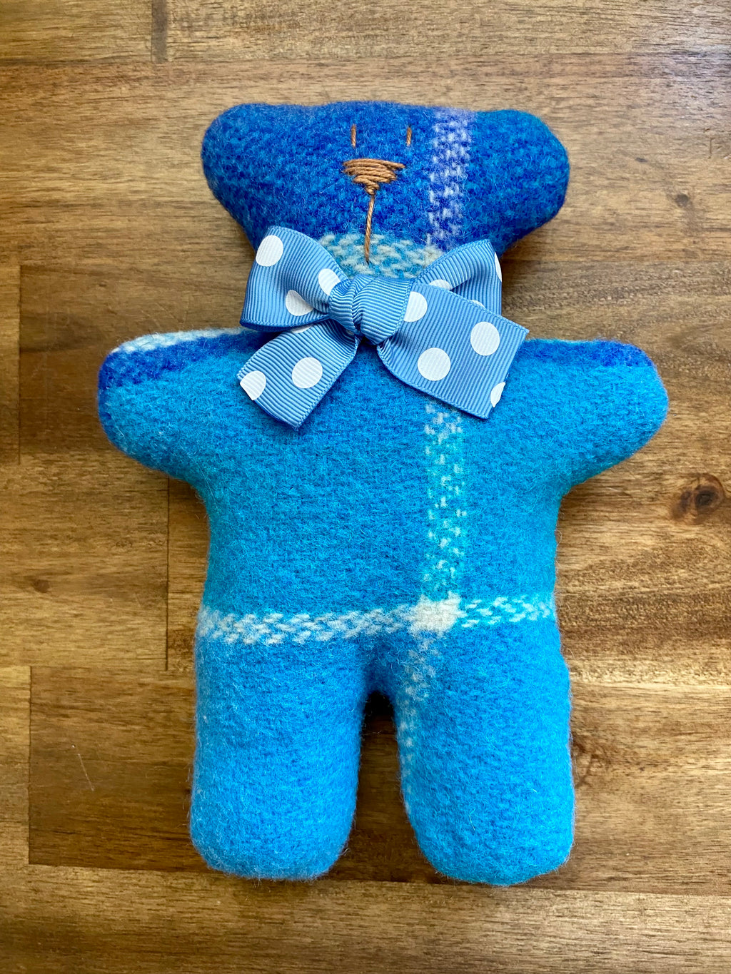 Upcycled Woollen Blanket Teddy Softie - Blue