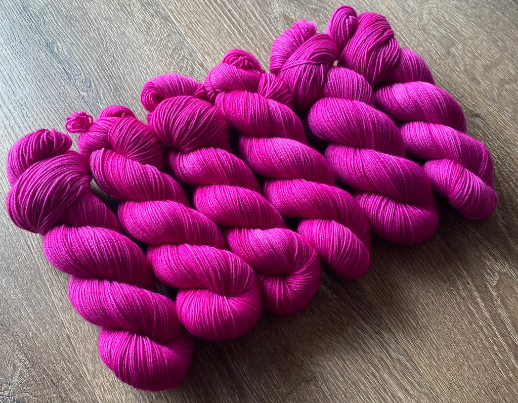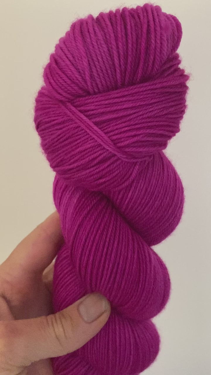 Available is 1 x 100 gram skein of 85% Extra Fine Merino Wool, 15% Nylon superwash yarn in a fingering or 4 ply weight.