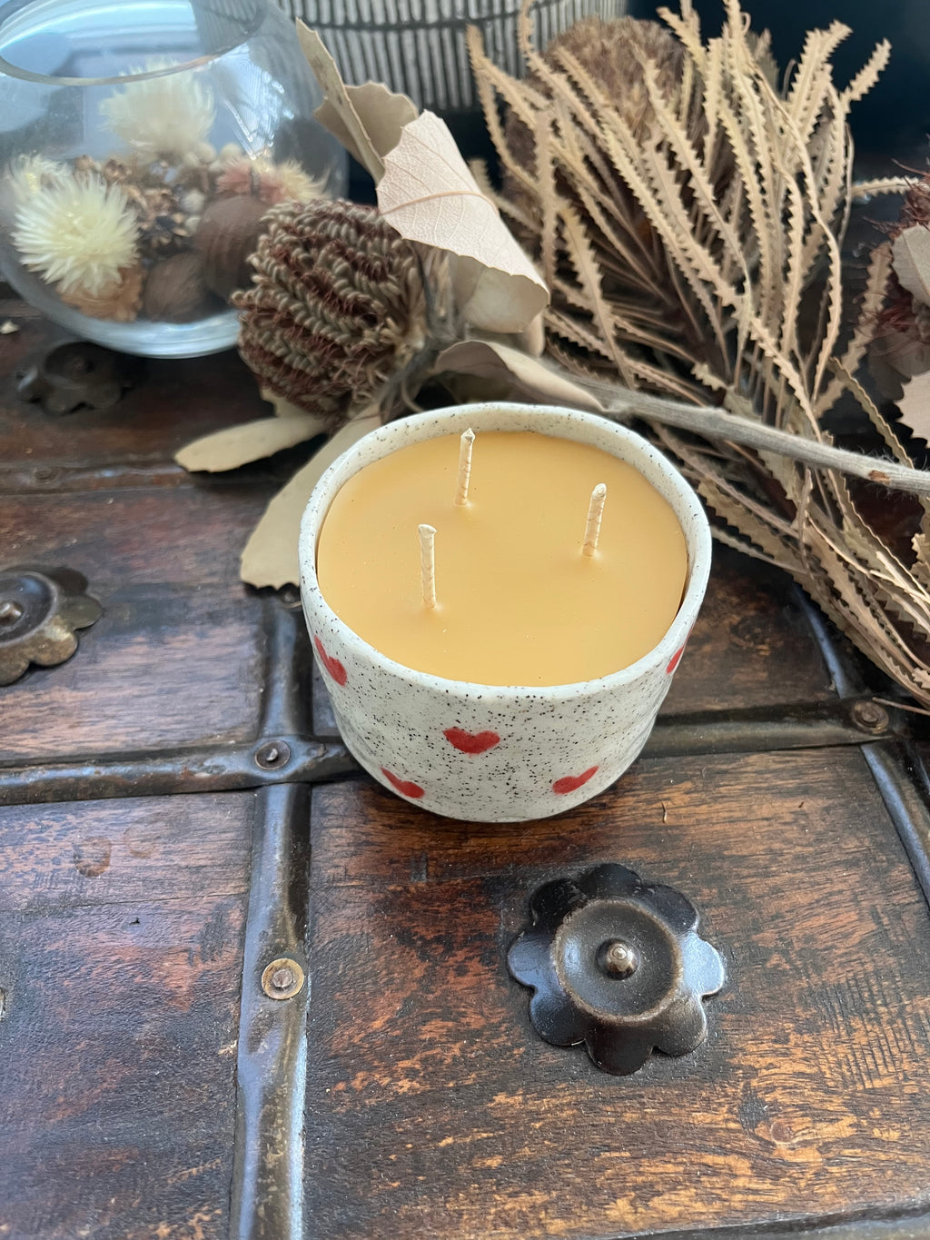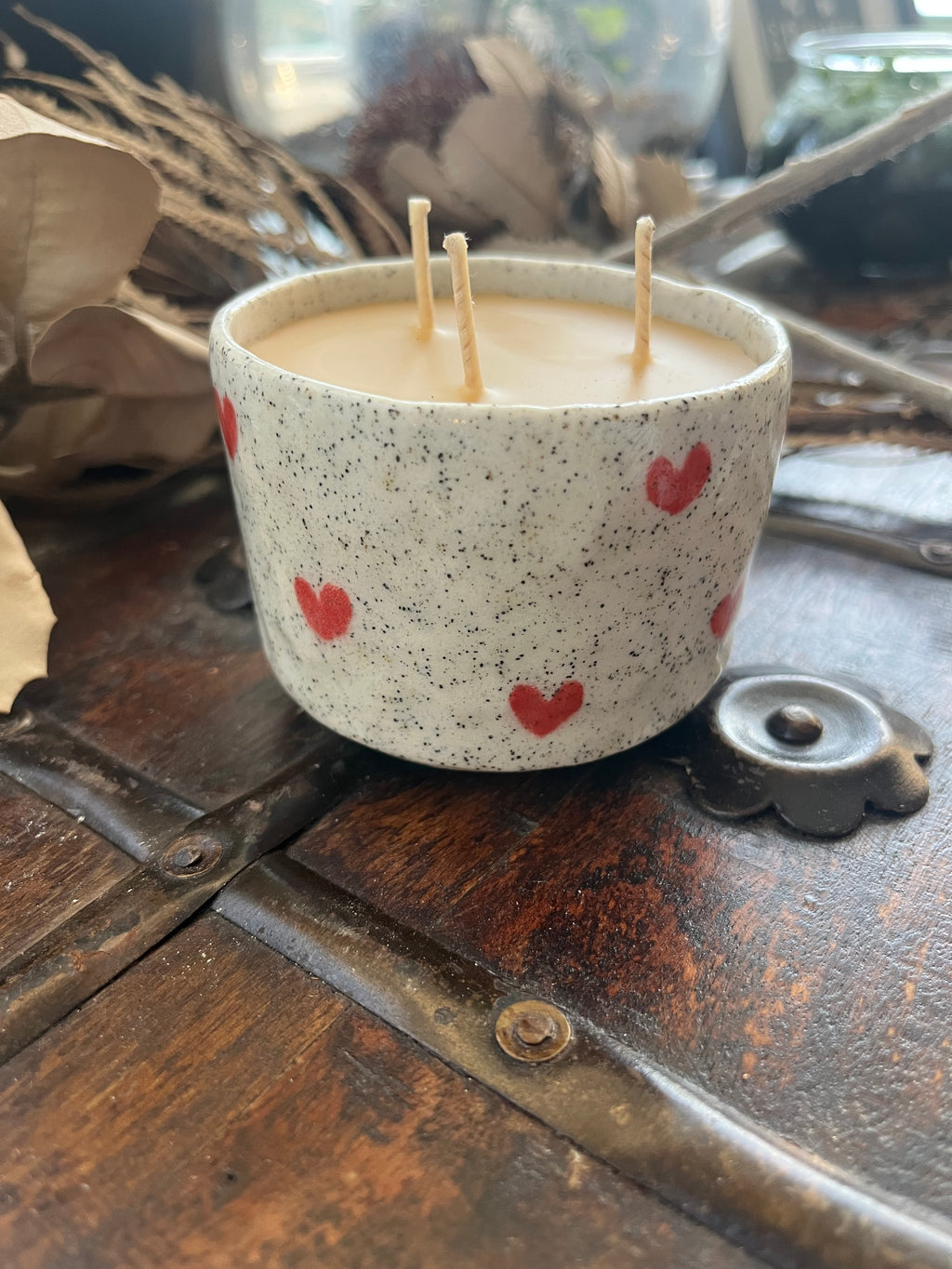 Embrace the beauty of imperfection. This hand‑pinched ceramic vessel, made from speckled white clay, is adorned with hand‑painted red hearts — a gentle reminder to love yourself just as you are. The ceramic piece is crafted with its own natural bumps and textures that celebrate life’s perfectly imperfect journey.