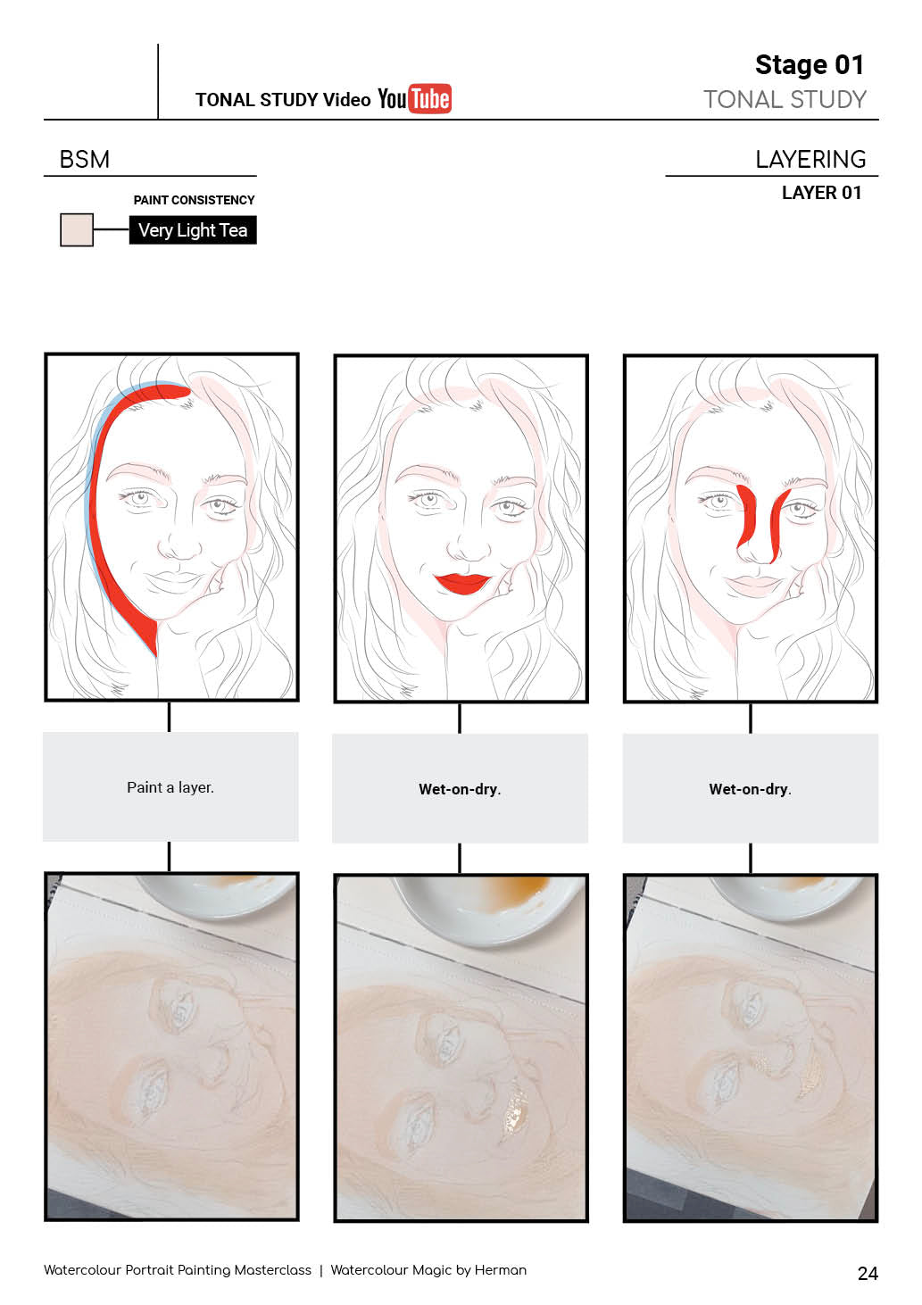 Detailed & illustrated steps with matching real-life images of the painting process.