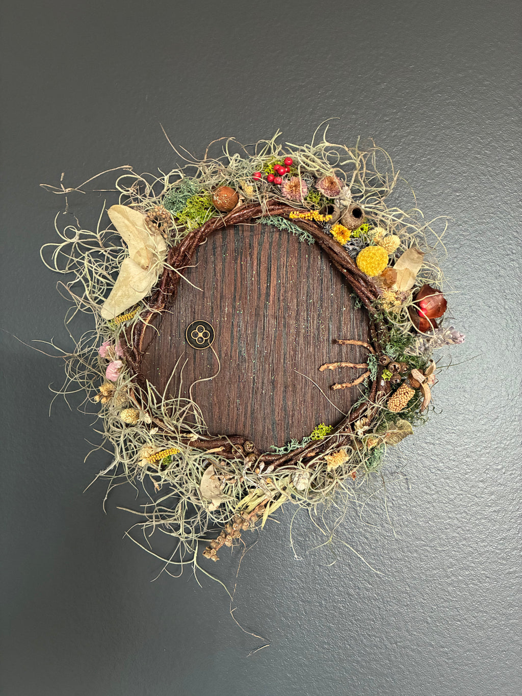 Hand Painted & Crafted with natural materials as well as repurposed items. These may include Dried Flowers, Seeds, Feathers, Crystals, Berries, Buttons & more.