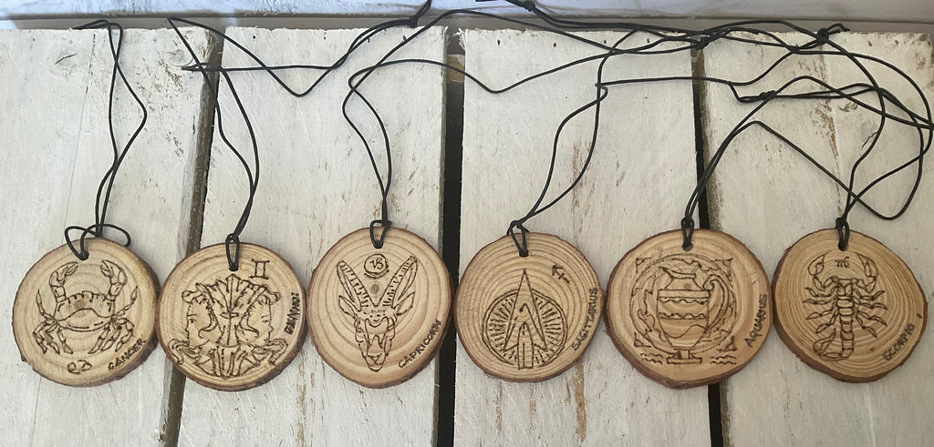 Pyrography wood discs are approximately from 4.5cm to 6cm in diameter. All are sanded, burned and finished by hand. There will be variations in burned design details. Fitted with a black hemp cord they are made to hang from your car mirror or anywhere else you would like! They can also be attached to a keyring.
